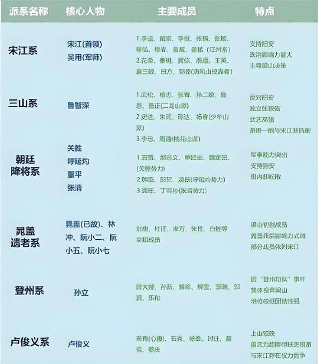 官军降将派由战败被俘或被设计招揽的朝廷将领组成,共约14人,是梁山马战实力的核心支撑。该派系猛将云集,关胜、呼延灼、董平均为梁山五虎将,张清以飞石绝技秒杀多名梁山好汉,索超战力稳居一流,整体马战能力远超其他派系。此外,凌振作为火炮专家,可提供远程火力支援,形成“马战+远程”的立体战力。但派系短板极为明显:内部缺乏凝聚力,各将领皆为朝廷旧部,出身优越,相互不服,缺乏统一领导;且派系存在的核心目的是支持招安,依附宋江以谋求仕途,并非真心“替天行道”。虽单体战力雄厚,但团队协作能力弱,综合实力不及宋江嫡系和三山派,位列第三。